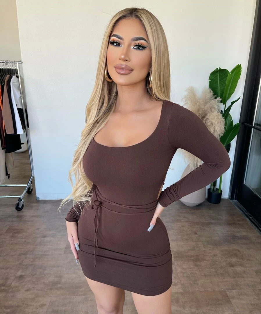 ~Long sleeve dress made from nice stretchy fitted material with open back detail, Dress is great for a nice night out and perfect with a cropped denim jacket