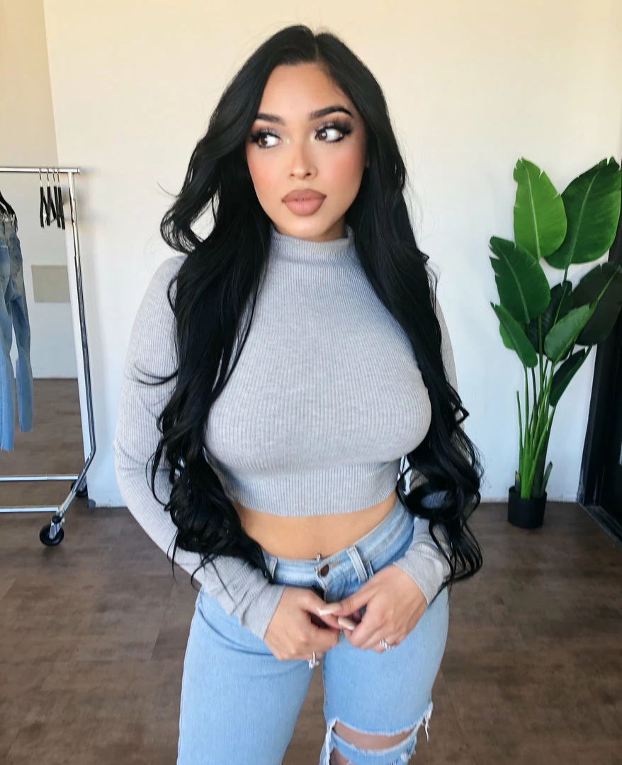 ~Long sleeve top made from ribbed fitted material, Top goes perfect with high rise bottoms and great for many occasions