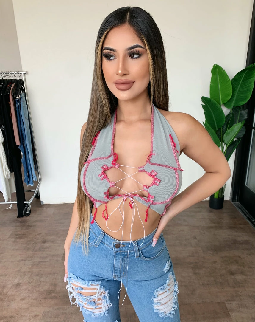 ~Top made from fitted material with adjustable front cross tie detail, Top is great for this hot summer weather and perfect with high rise bottoms