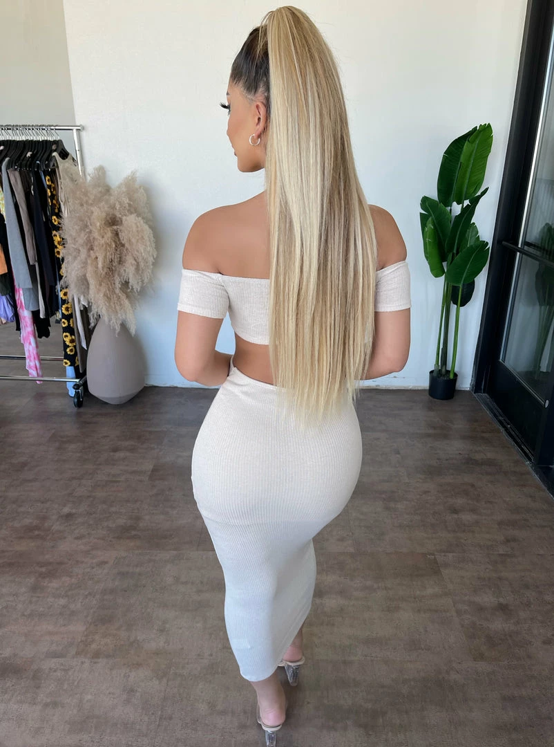 ~Dress made from ribbed material with front faux knot detail, Dress is perfect with many heels and great for a nice special night outÂ