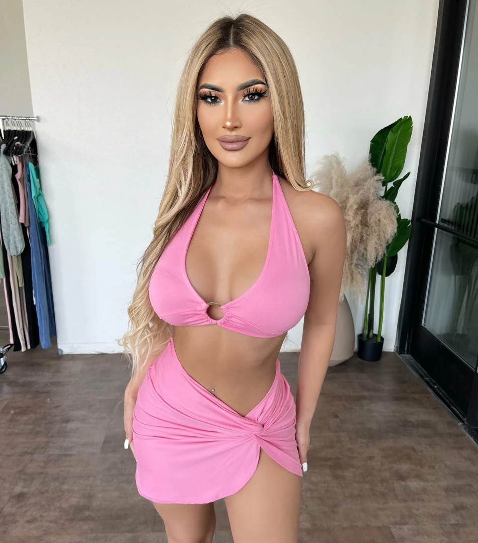 ~Matching set made from soft material with halter top and skirt for bottoms, Top has front ring detail and goes great with heelsÂ