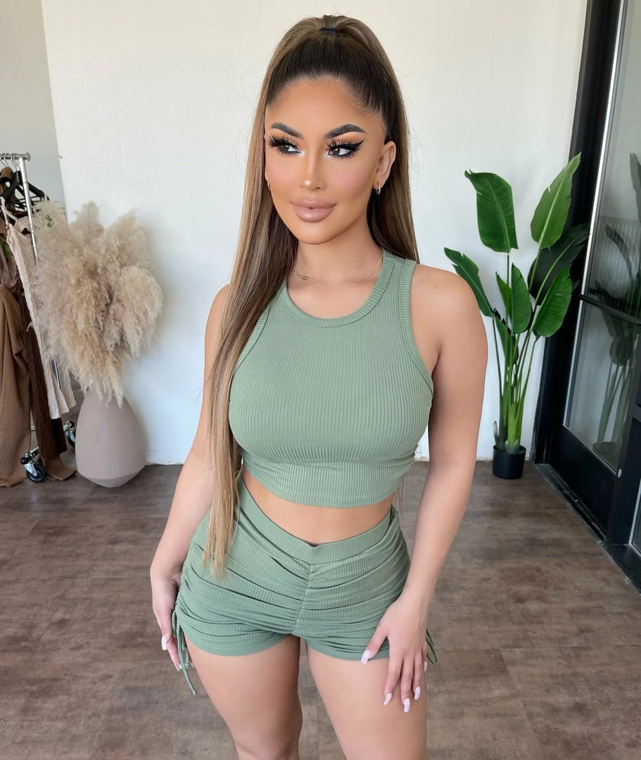 Mega Line Bottoms Kayla Shorts Set(Olive)