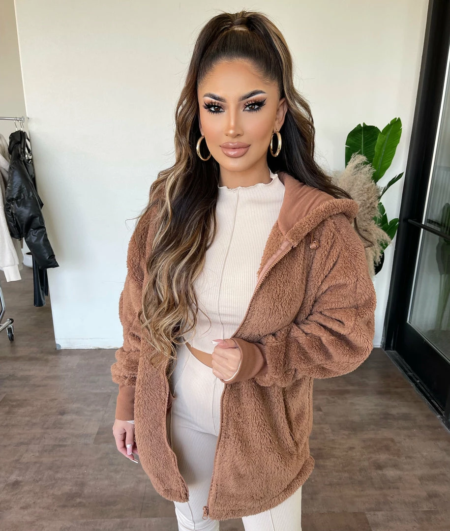 ~Jacket made from nice furry material with adjustable front zipper detail, Jacket goes great with many outfits and perfect for this cold weather