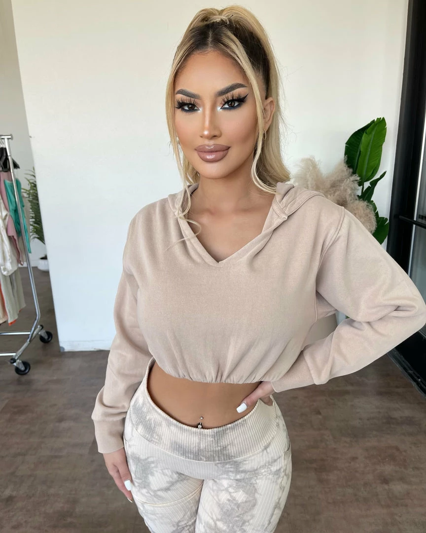 ~Hoodie made from nice thick material with no adjustable hoodie straps, Hoodie goes great with high rise bottoms and perfect for many occasions