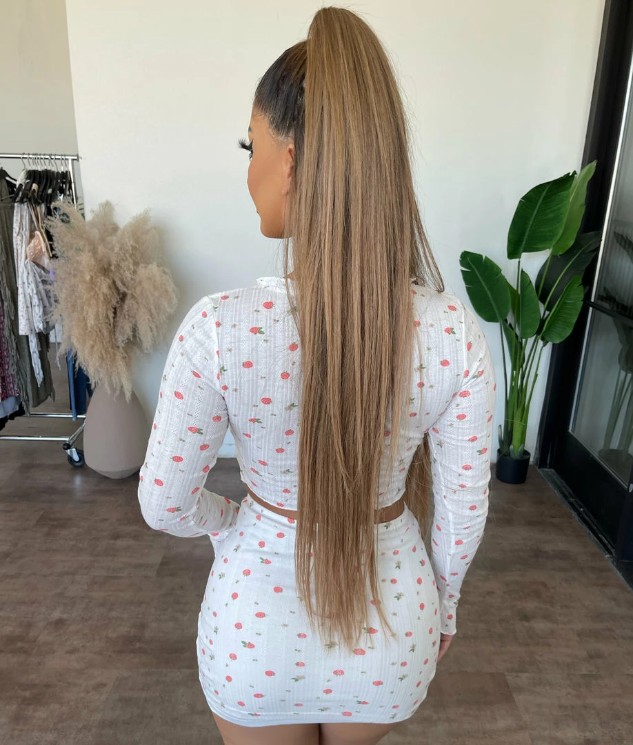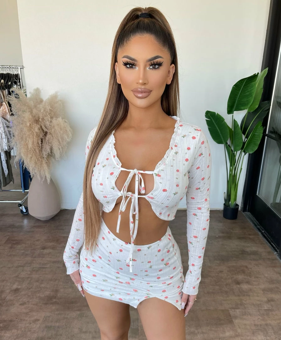 ~Set made from printed material with long sleeve top and skirt for bottoms, Set goes great with sneakers or heels and perfect for many occasions