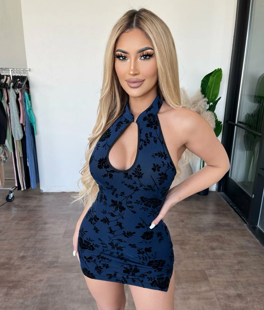 ~Dress made from floral printed material with adjustable neck clip detail, Dress goes great with many heels and is perfect for many occasions