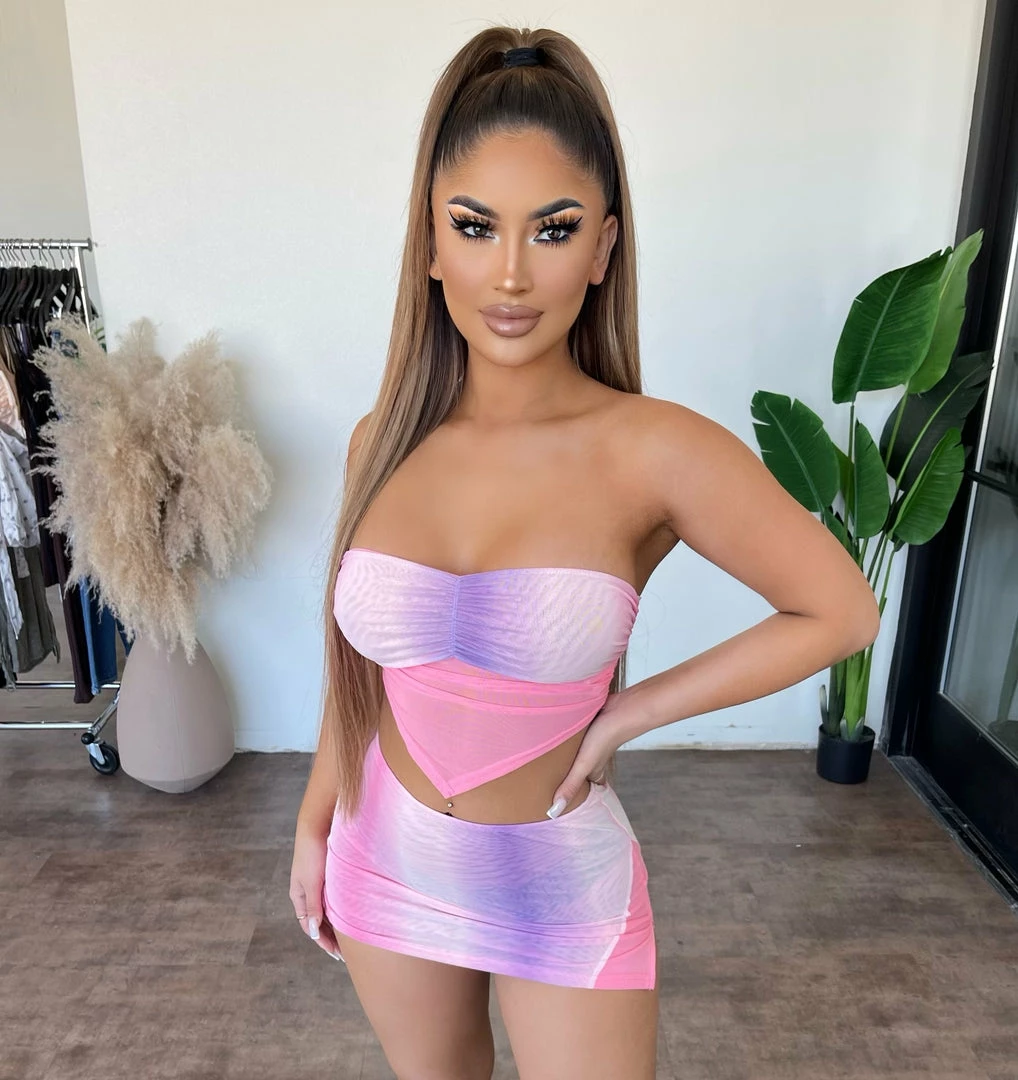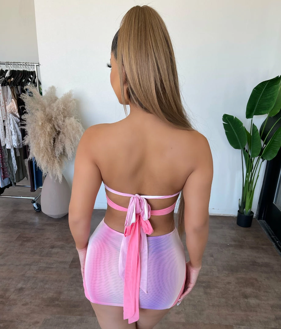 ~Set made from mesh print material with halter top and skirt for bottom, Set goes great with many heels or sneakers and perfect for a nice night outÂ