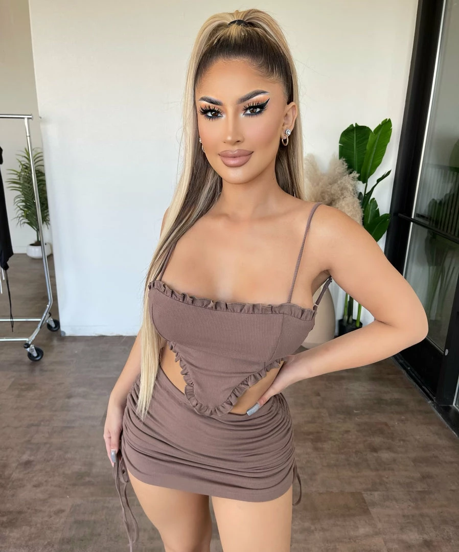 ~Set made from a soft ribbed material with cami top and skirt for bottoms, Set goes great with a cropped denim jacket and perfect with heels or sneakers