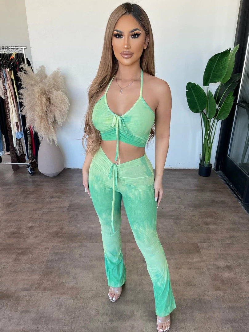 ~Matching made from nice print mesh material with halter top and pants for bottoms, Top has adjustable front scrunch detail and goes great with many heelsÂ