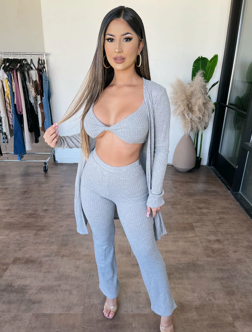 ~Three piece matching set made from nice soft waffle material with a tank crop top cardigan and leggings for bottoms, Set is great for many occasions
