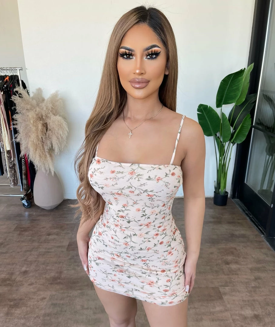 ~Dress made nice mesh floral print material non-adjustable straps, Dress goes great with a cropped jacket and perfect with many heelsÂ