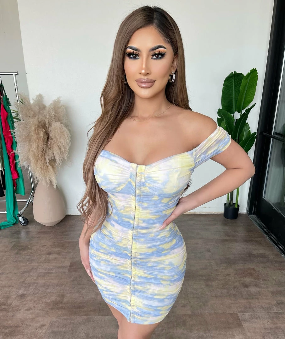 ~Dress made from tie dye print material with front hook detail, Dress is great for a nice day out and perfect with heels and crop jacket