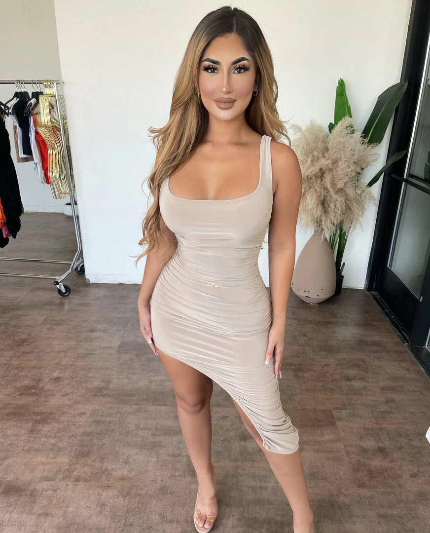 Beautiful side slit dress.