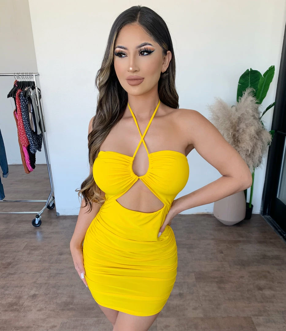 ~Dress made from fitted material with front chest ring detail, Dress also has nice open front stomach detail and goes great with heelsÂ