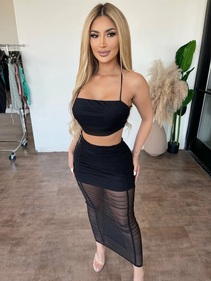 ~Matching set made from nice fitted mesh material with cami top and skirt for bottom, Set goes great with a cropped denim jacket and perfect for a nice special occasion