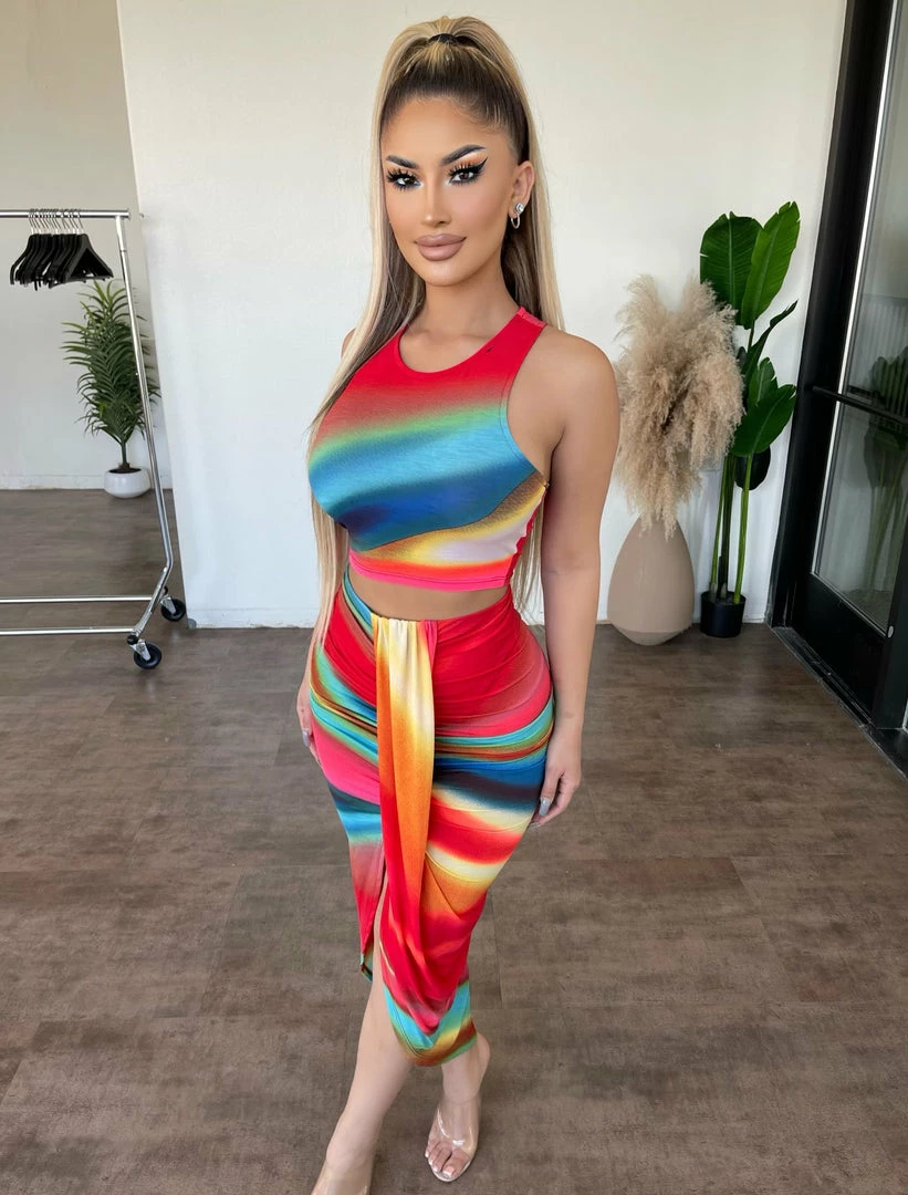 ~Set made from stretchy fitted material with tank top and skirt for bottoms, Set goes great with many heels and is perfect for a nice special occasion