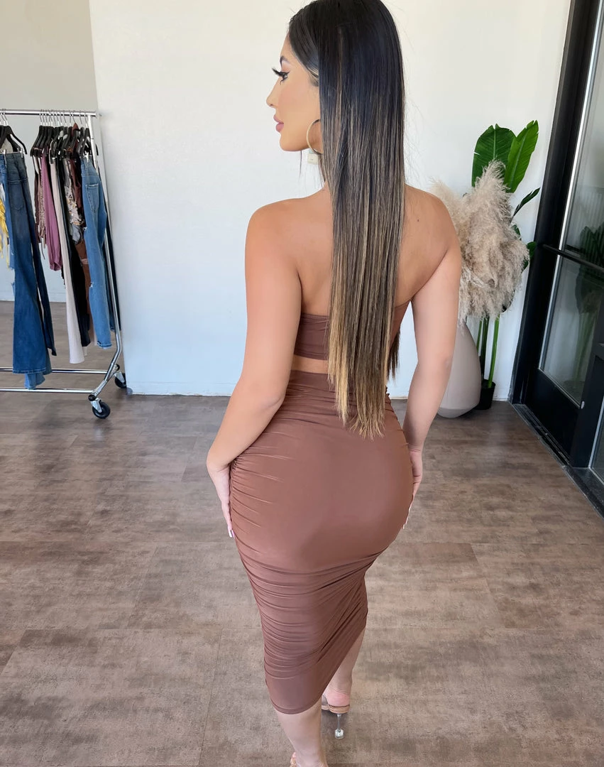 ~Set made from stretchy fitted material with tube top and skirt for bottoms, Set is great for a nice night or day outÂ