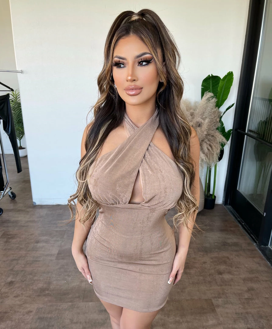 ~Dress made from the stretchy soft shiny material. Dress is great for a nice special night out and great with heels and a cropped sweater