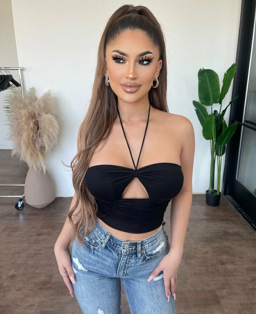 ~Top made from fitted material with adjustable back zipper detail, Top goes great with high rise bottoms and perfect for a nice hot day