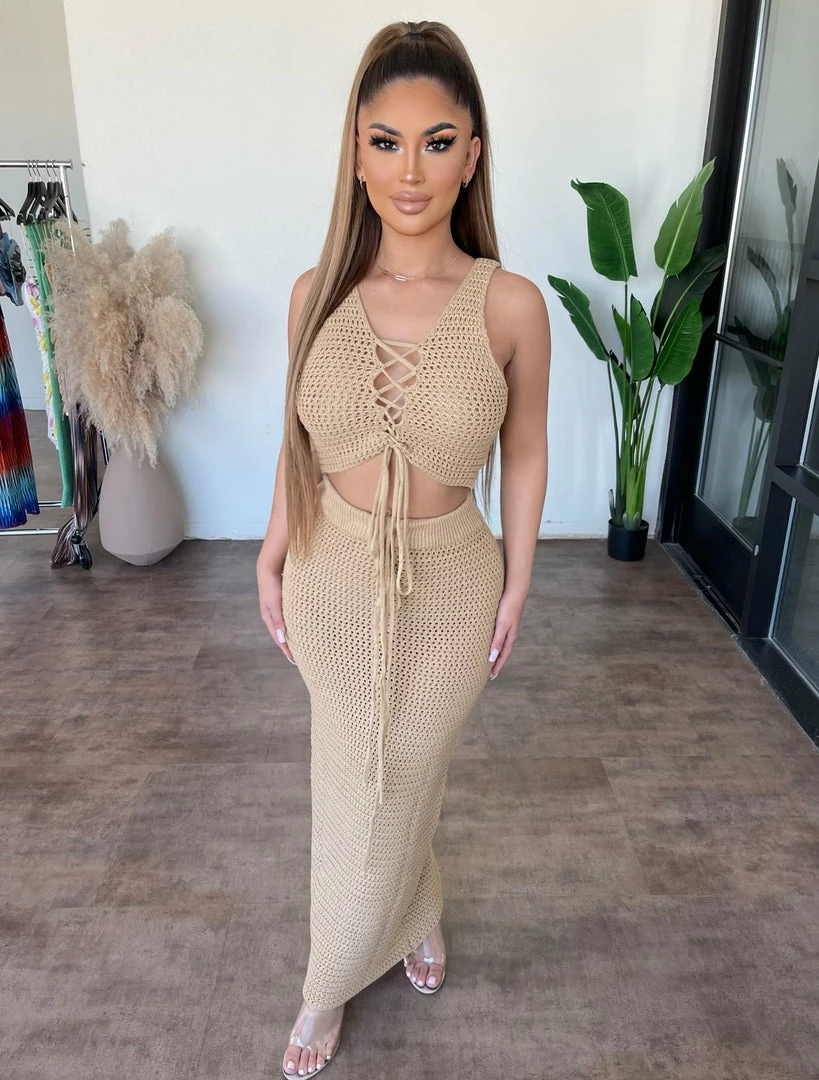 Salty Tops Emma Crochet Set (Taupe)