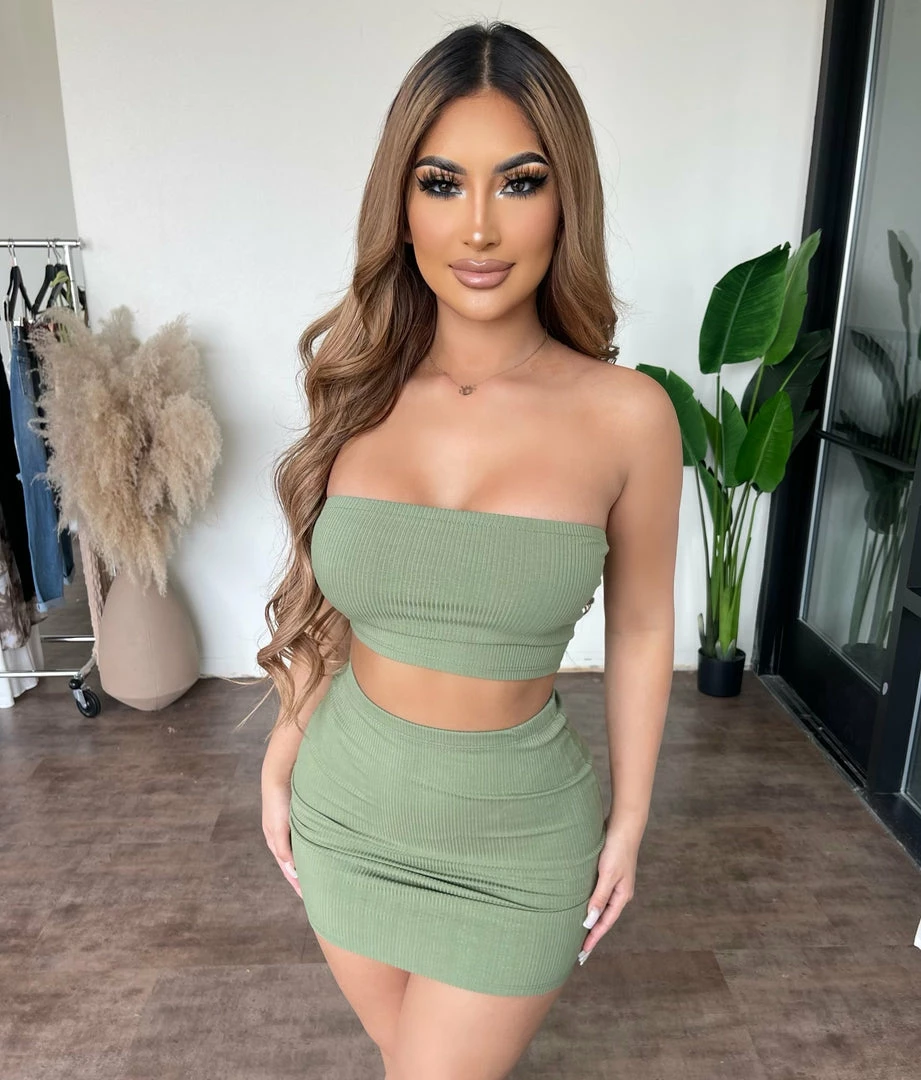 ~Matching set made from fitted ribbed material with tube top and skirt for bottom, Set goes great with many cropped jackets and perfect for a nice day outÂ