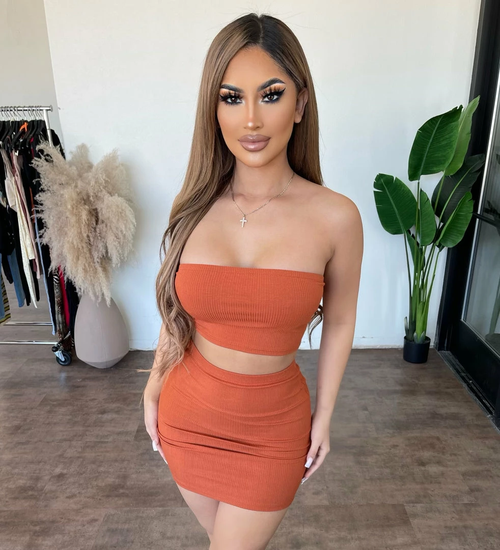 ~Matching set made from fitted ribbed material with tube top and skirt for bottom, Set goes great with many cropped jackets and perfect for a nice day outÂ