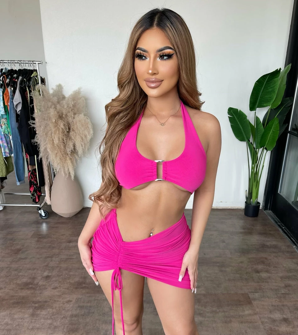 ~Set made from fitted material with halter top and skirt for bottoms, Skirt has adjustable side scrunch detail and goes great with heelsÂ