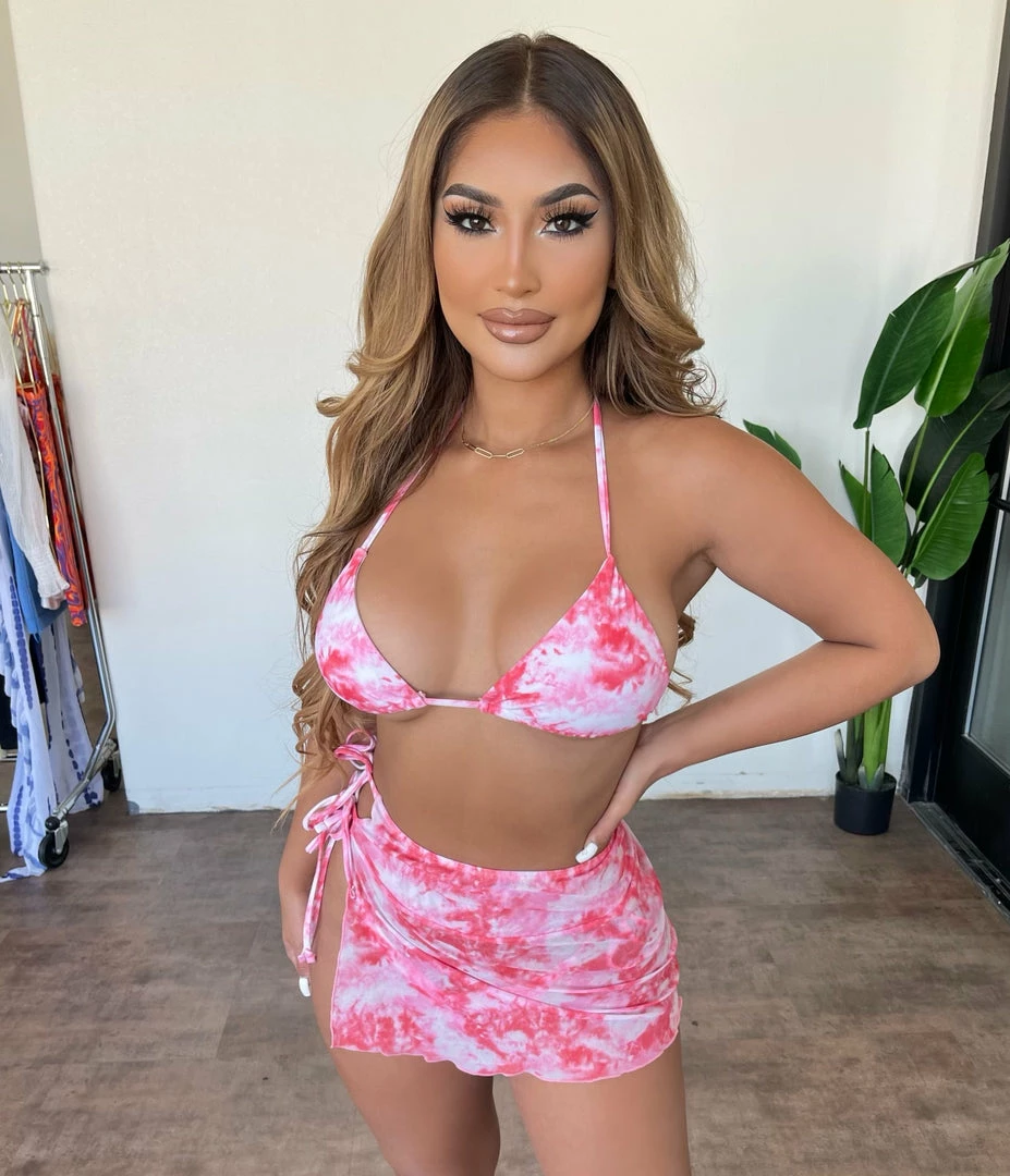 Stylish Swimmers Aleena Bikini 3 Piece Set(Pink/White)