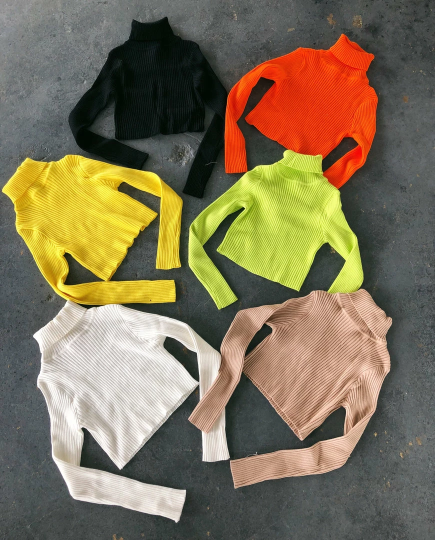 ~Long sleeve top made from thick ribbed material and turtle neck detail, Goes perfect with many of our bottoms
