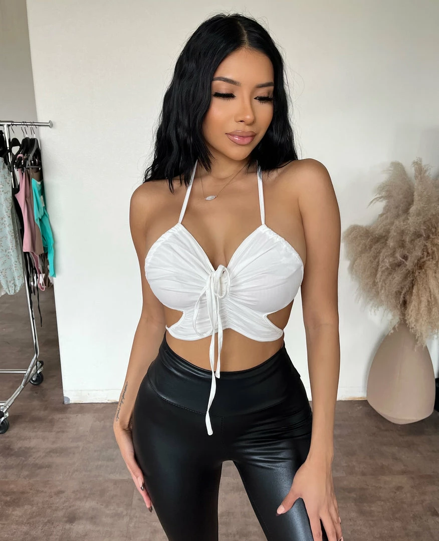 ~Top made from nice soft fitted material with adjustable back tie detail, Top is great for this hot summer weather and perfect with many high rise bottoms