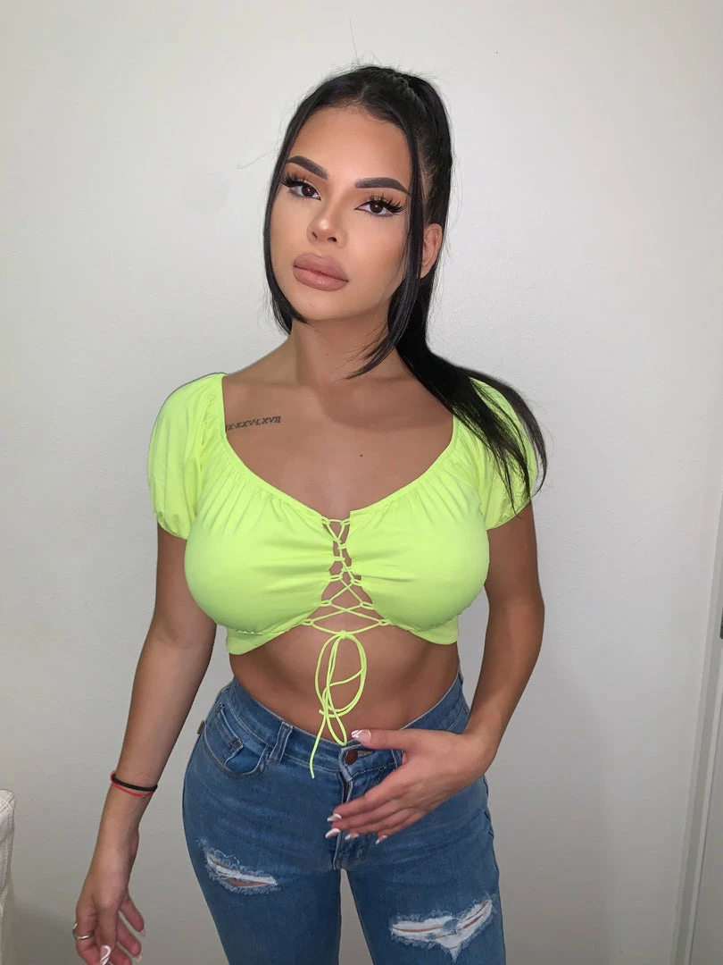 ~Off shoulder top with adjustable front lace detail, Top goes perfect with a pair of distressed denim bottoms and is perfect for a night or day out