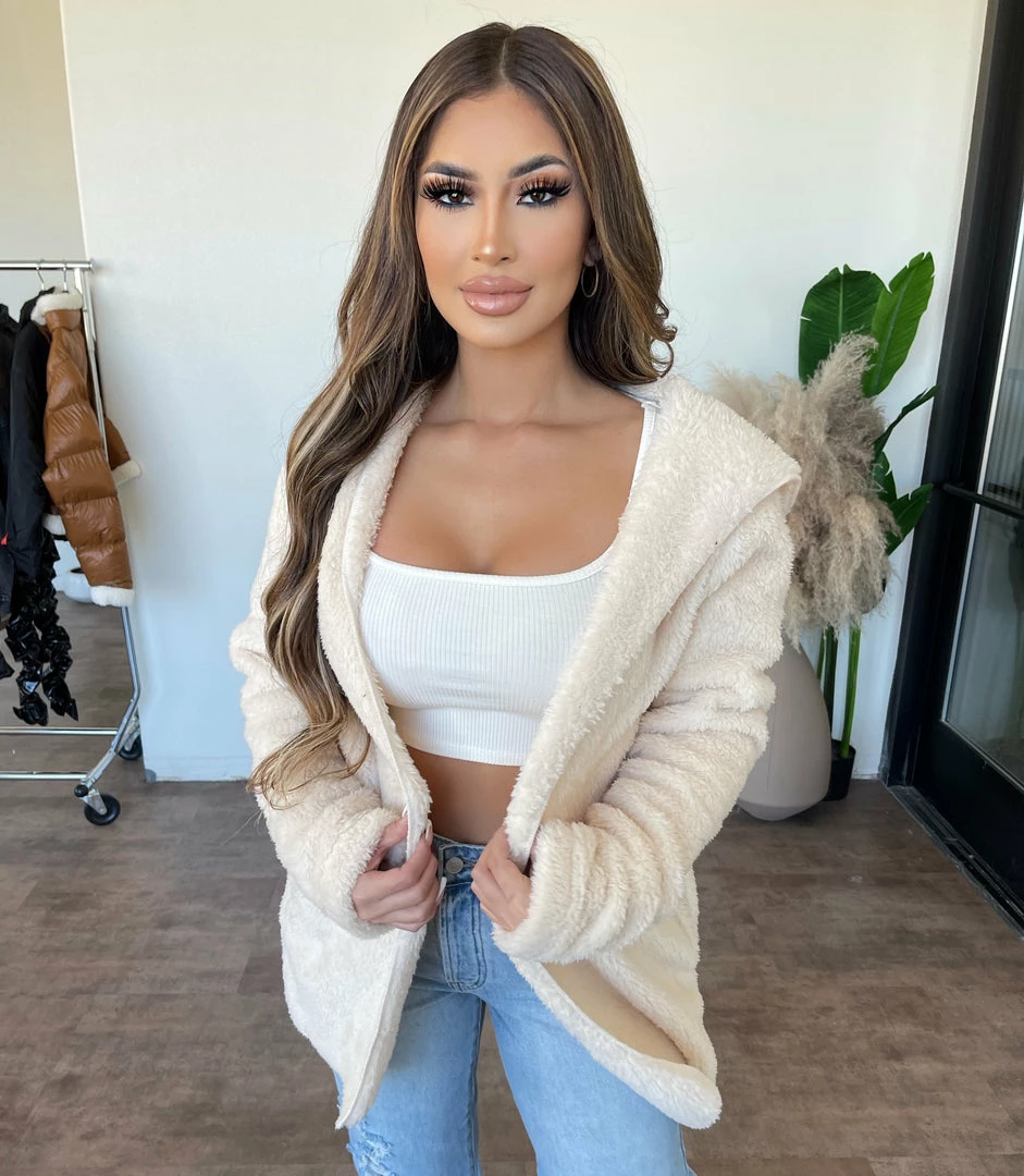 ~Long sleeve cardigan made from nice furry material, the cardigan is perfect for this really cold weather and goes great with many outfits