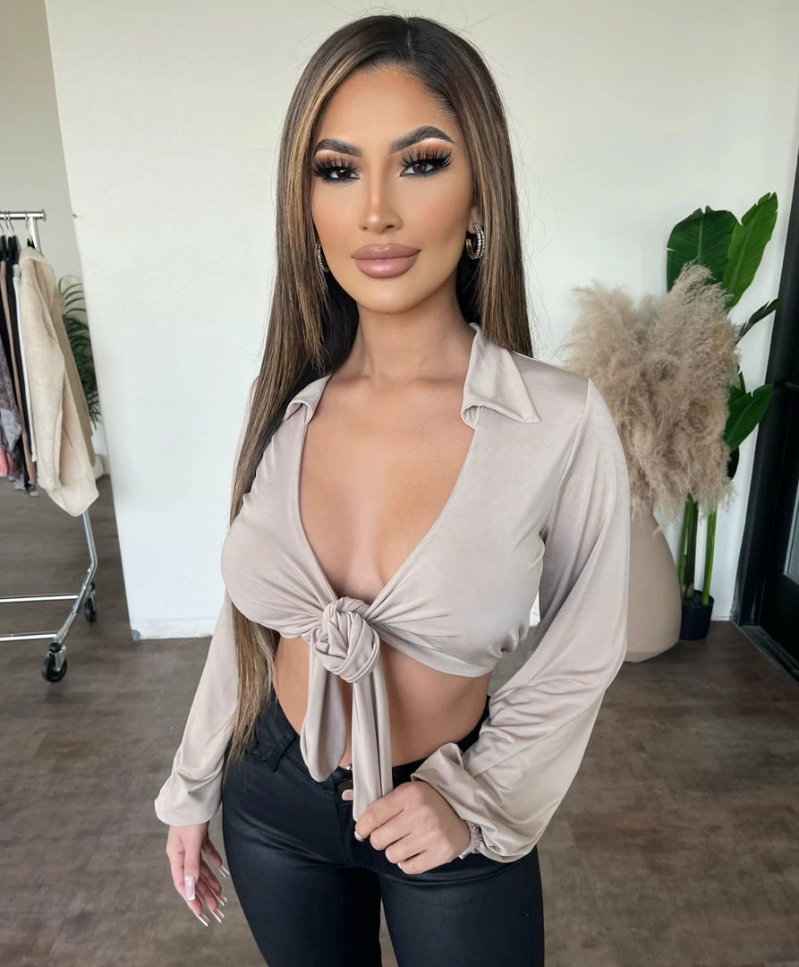 ~Long sleeve top made from nice fitted soft material with front knot detail, Top goes great with high rise bottoms and perfect for a nice day outÂ