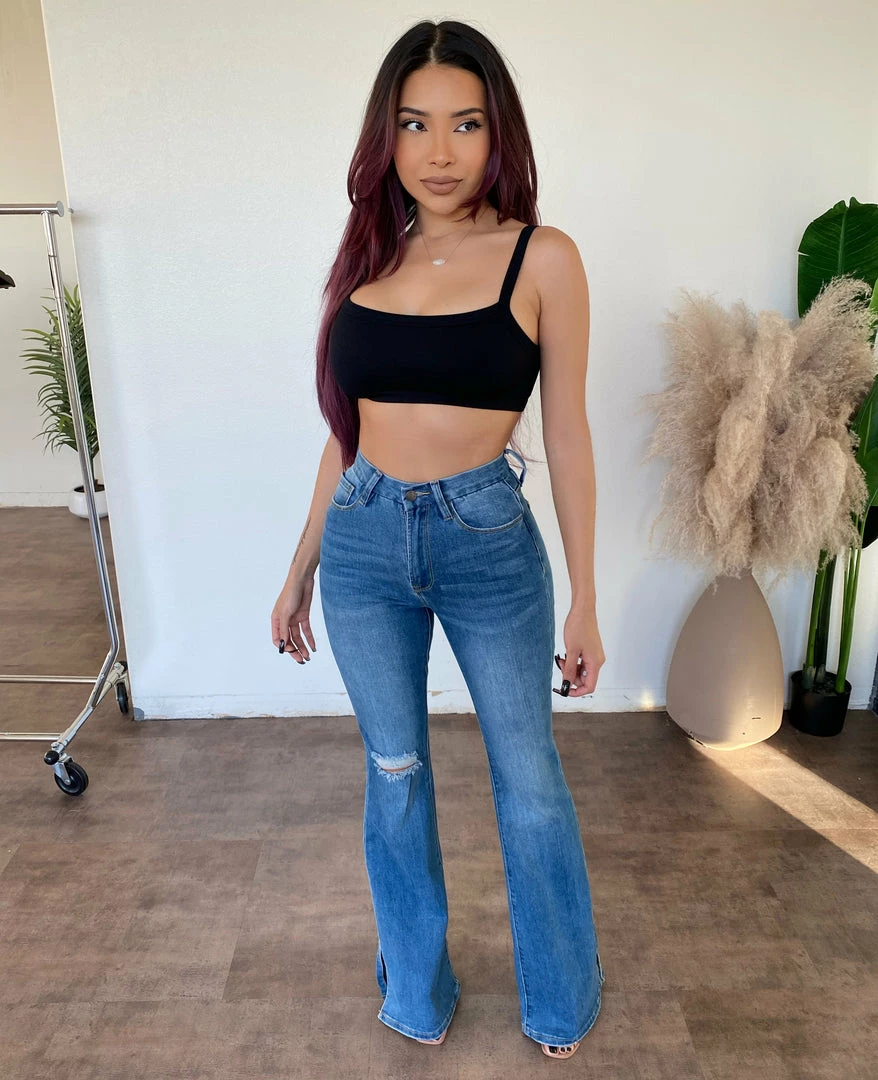 ~Pants made from nice fitted material with flare detail towards bottom of jeans, Jeans have slit on bottoms ends and great for many occasions, Pants run a bit longÂ