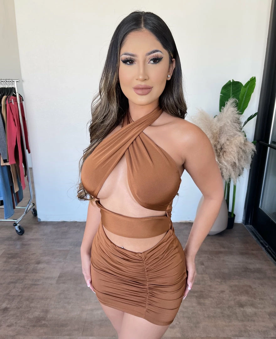 ~Set made from shinny material with halter top and skirt for bottoms, Set is great for a nice special occasion and perfect with heels